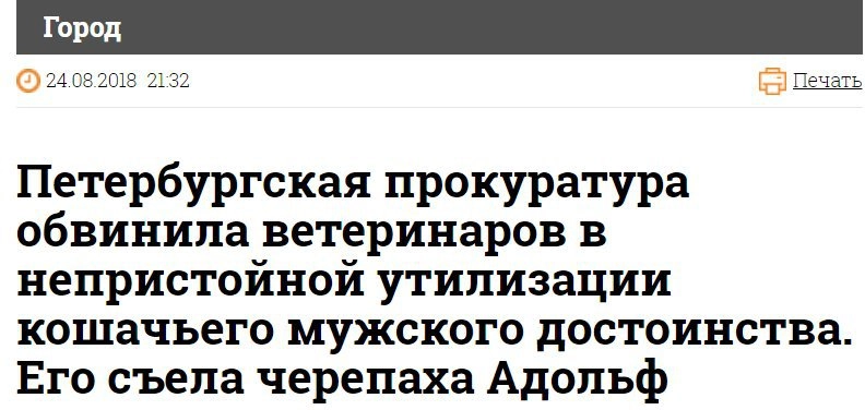 Петербургская прокуратура обвинила ветеринаров в непристойной утилизации кошачьего мужского достоинства. Его съела черепаха Адольф