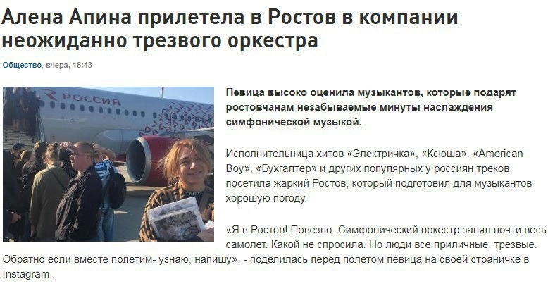 Алена Апина прилетела в Ростов в компании неожиданно трезвого оркестра