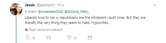 «Либералы любят говорить, что республиканцы — нетерпимые расисты. Но они сами являются тем, что они ненавидят. Лицемеры».
