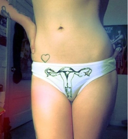 Еще один необычный рисунок, который придумала мастерица — изображение женской репродуктивной системы на плавках.