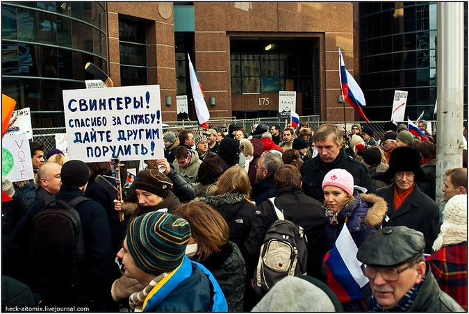 10 декабря в Торонто прошел митинг "За честные выборы!". Около 60 человек собрались около здания консульства Российской Федерации в Торонто с целью высказать свой протест против фальсификации выборов в государственную Думу РФ 4 декабря 2011 года. Безопасность протестанотов обеспечивали несколько полицейских. Митинг прошел мирно, без конфликтов, в дружественой атмосфере.