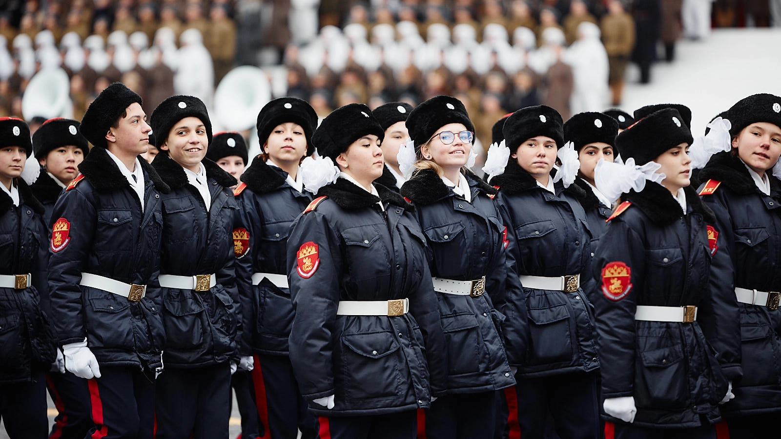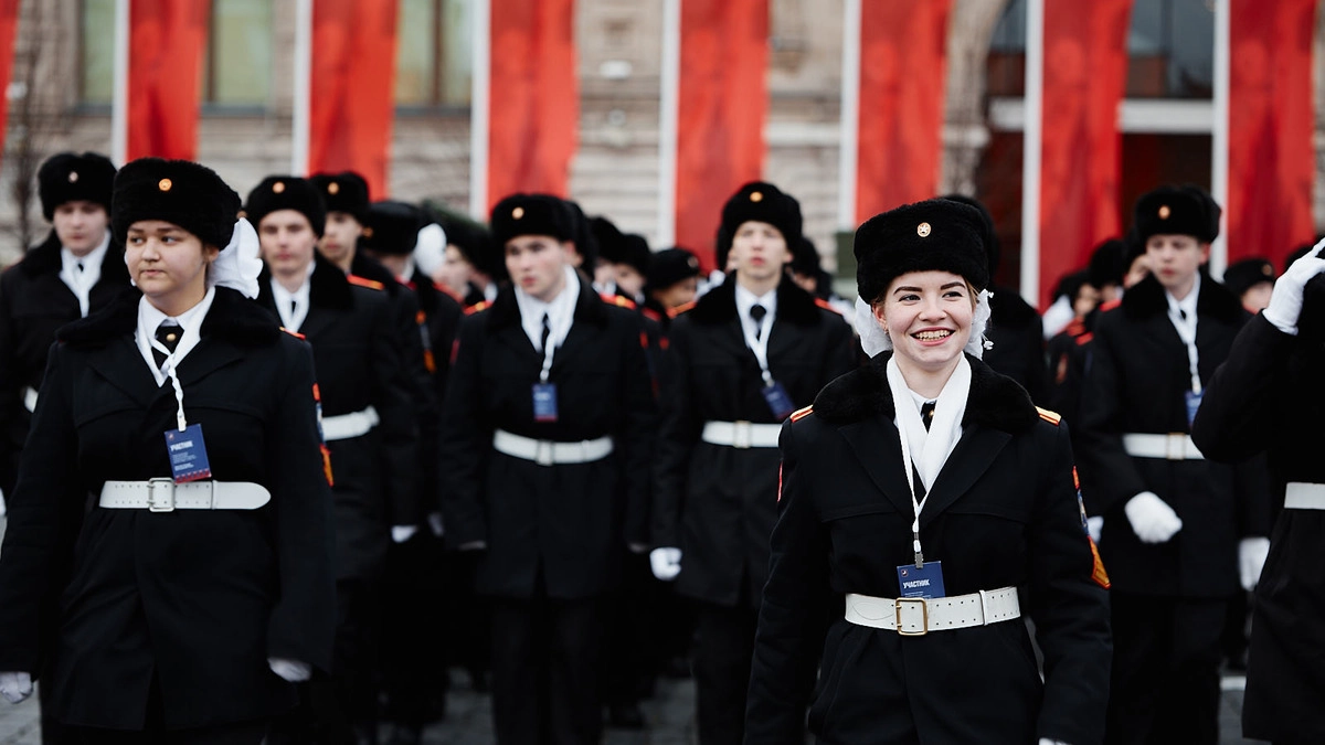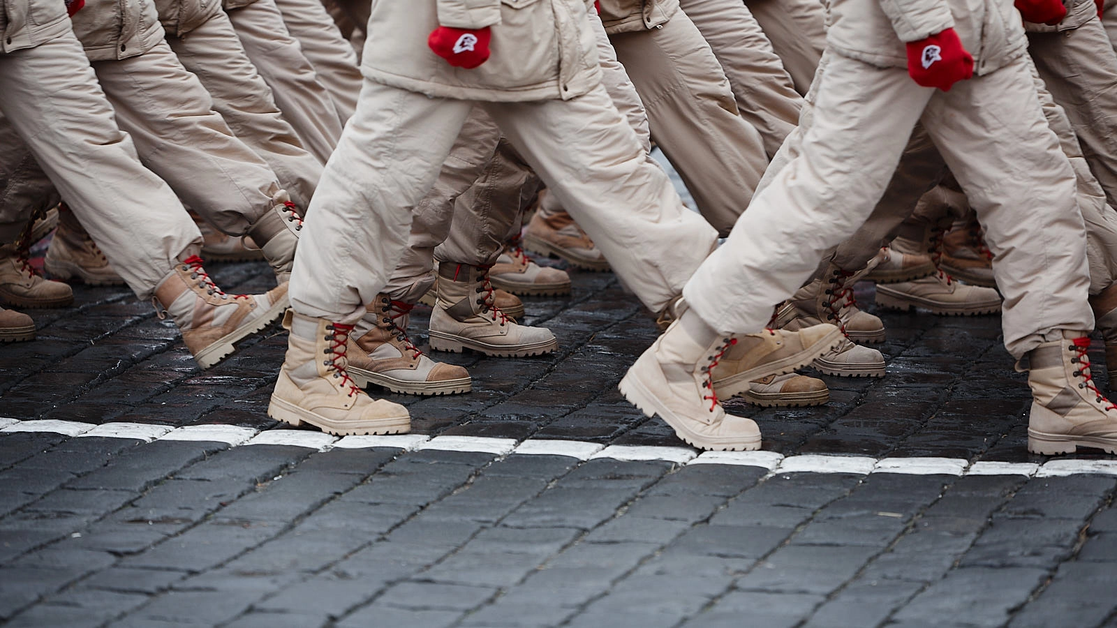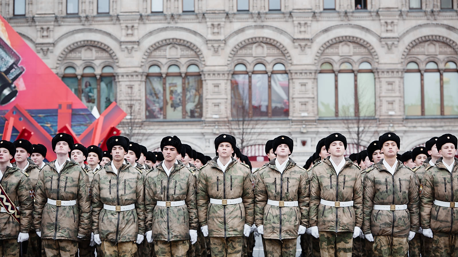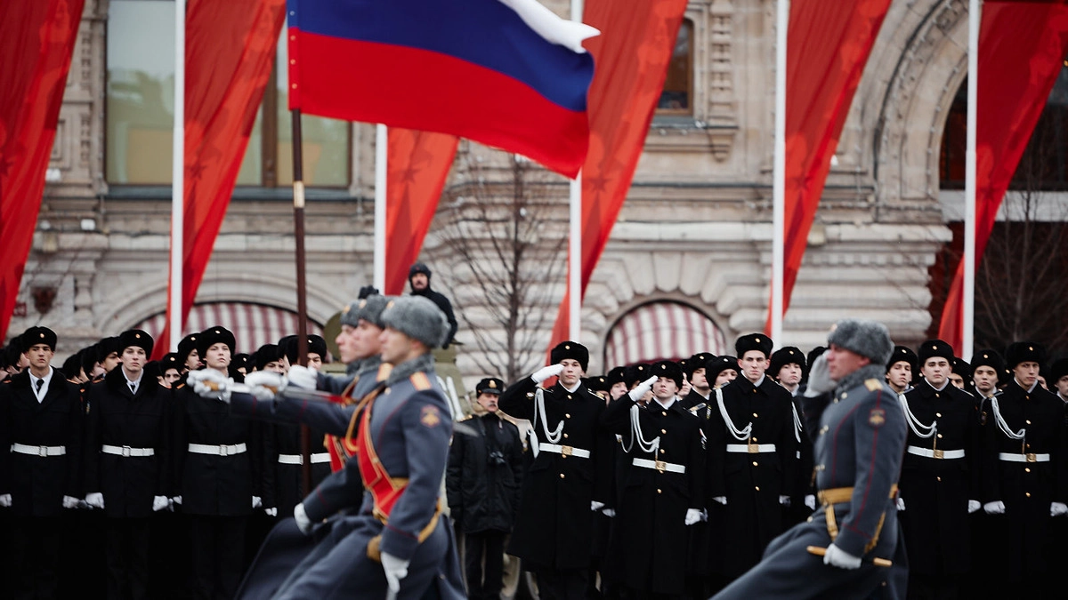 Под аккомпанемент сводного военного оркестра московского гарнизона по Красной площади прошли четыре тысячи человек, включая почетный караул ВС РФ, кавалерийскую группу всадников президентского полка, суворовцев, кадетов и военнослужащих Минобороны России.