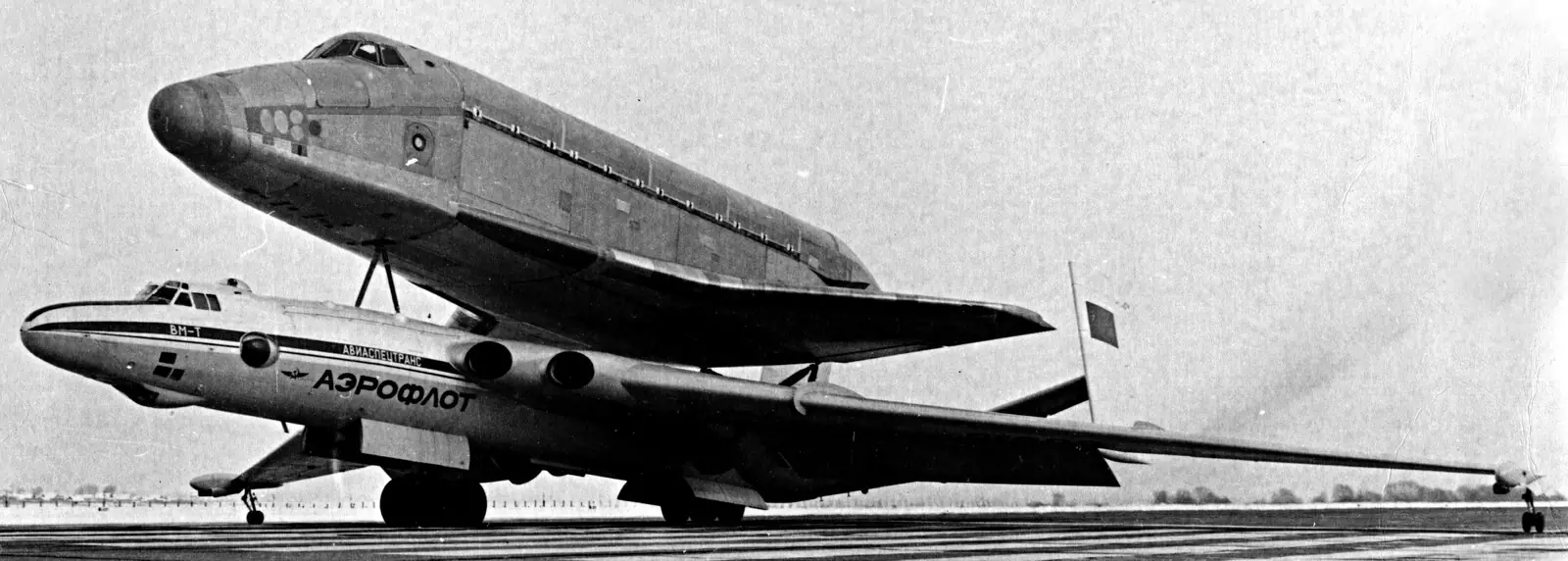 На обоих «Атлантах» в 1980-х годах совершено более 150 полётов по доставке на Байконур всех крупногабаритных элементов космических комплексов «Энергия» и «Буран». За специфический внешний вид — присущий бомбардировщику «поджарый» фюзеляж с громоздким контейнером на спине — ВМ-Т получил название «летающая бочка» (хотя правильнее было бы этот самолёт назвать «летающим бочковозом»).