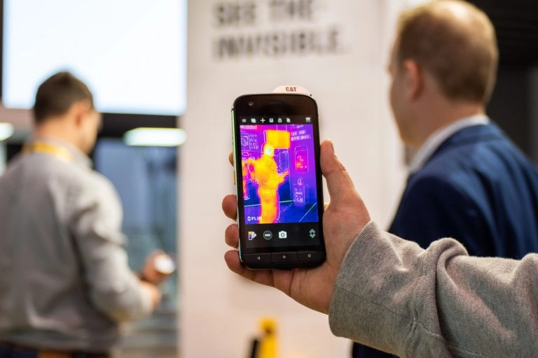 Не менее интересно было подержать в руках смартфон от CAT, который включает в себя такие инструменты, как тепловизор и лазерную рулетку. Аппарат будет интересен людям специальных профессий и строителям. Боюсь, что позволить его в России смогут себе только владельцы строительных компаний, но никак не простые рабочие.