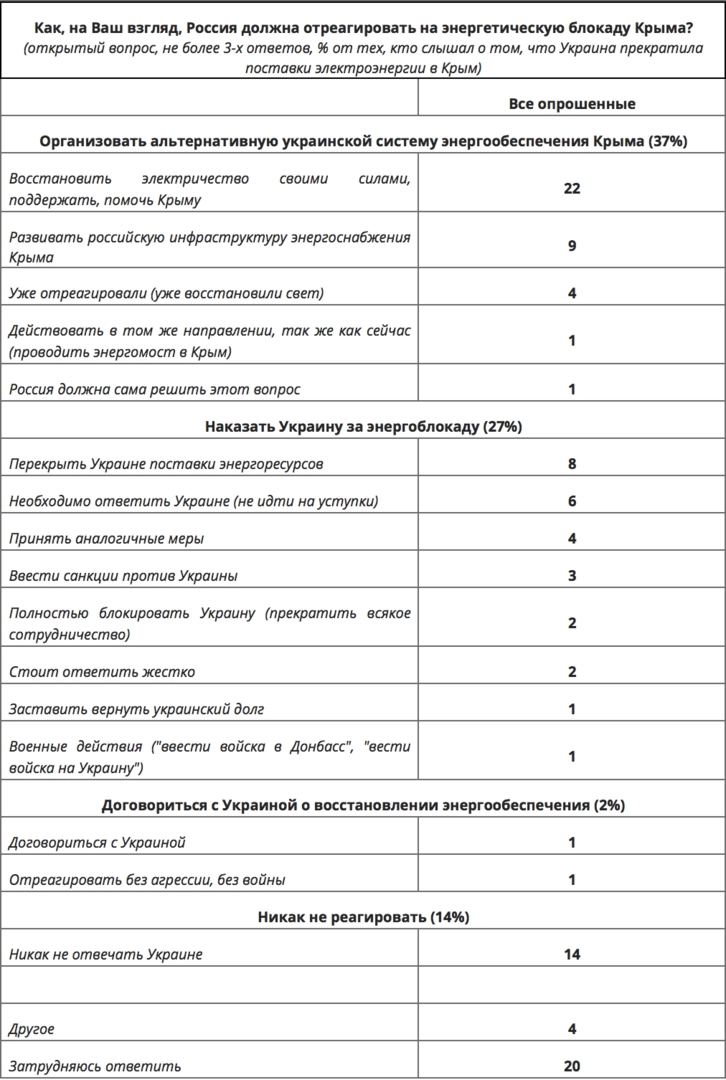 Треть россиян желает наказать Украину за блэкаут в Крыму