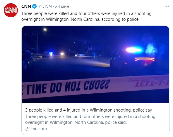 Три человека погибли и четверо пострадали в ночь на субботу при стрельбе в американском городе Уилмингтон штата Северная Каролина.