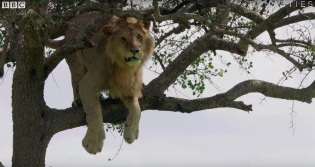 Нерешительный лев стал героем фильма ВВС о дикой природе. Царь зверей залез на одинокое дерево посреди саванны заповедника Масаи-Мара на юго-западе Кении, а вот слезть с него испугался. Как обыкновенная домашняя кошка. Позор трусливого льва ещё больше усугубили три львицы, собравшиеся под деревом и явно приглашавшие самца погулять. Однако лев спускаться наотрез отказался.