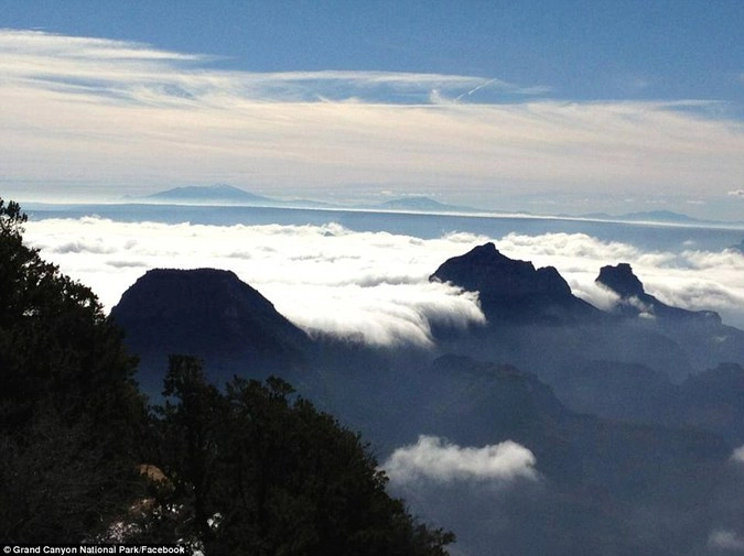 Туман заполнил Большой каньон, что случается раз в десять лет
