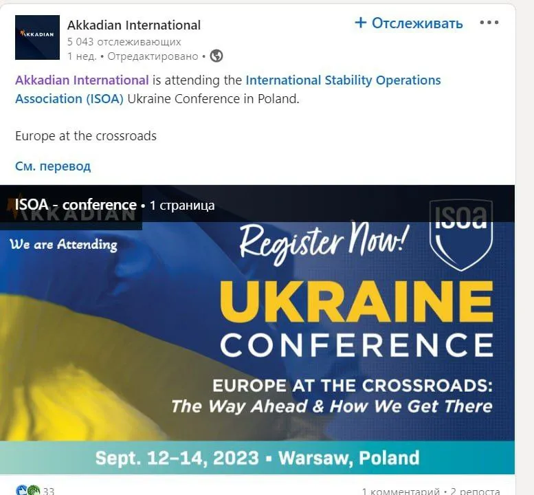 Тем не менее известно об организации «Аккадиан Интернешнл», члены которой были замечены на Украине, неоднократно проводили конференции в Польше и Великобритании, призывая вступать в конфликт на стороне киевского режима.