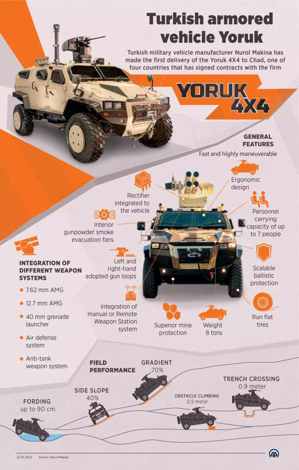 Как сообщило агентство «Анадолу», турецкий производитель бронеавтомобилей Nurol Makina, который уже подписал контракт с четырьмя странами на поставку своей новинки, отправил первую партию машин в Республику Чад.