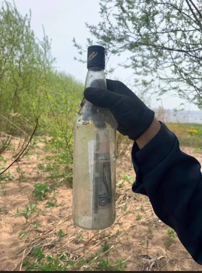 Однажды вечером, сидя на берегу Финского залива, она решила положить записку и 10-рублевую купюру в стеклянную бутылку и бросить ее в воду в надежде, что когда-нибудь кто-то найдет ее привет из прошлого.