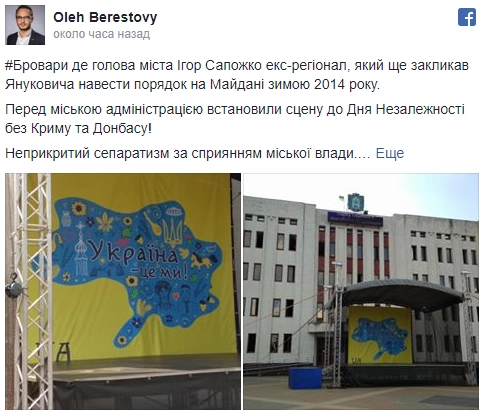 Позже в Броварском горсовете пообещали убрать карту со сцены. Депутат местного совета Олег Берестовой пообещал, что изображение Украины без «оккупированных территорий будет демонтировано в ближайшее время».
