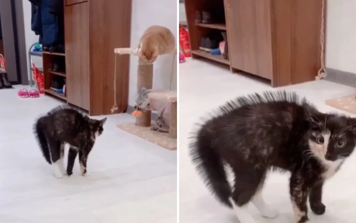 Иногда смена имиджа бывает слишком кардинальной и может шокировать окружающих. На видео сняли котейку, которого так удивила новая стрижка брата, что у него шерсть встала дыбом. Котофей будто побывал на детском представлении, где с помощью различных чудес физики можно наэлектризовать волосы. Рыжий кот, который тоже заметил странный имидж брата, реагировал спокойно, он лишь периодически посматривал на вздыбленного котейку. Видимо, ждал от него еще какой-нибудь забавной реакции.