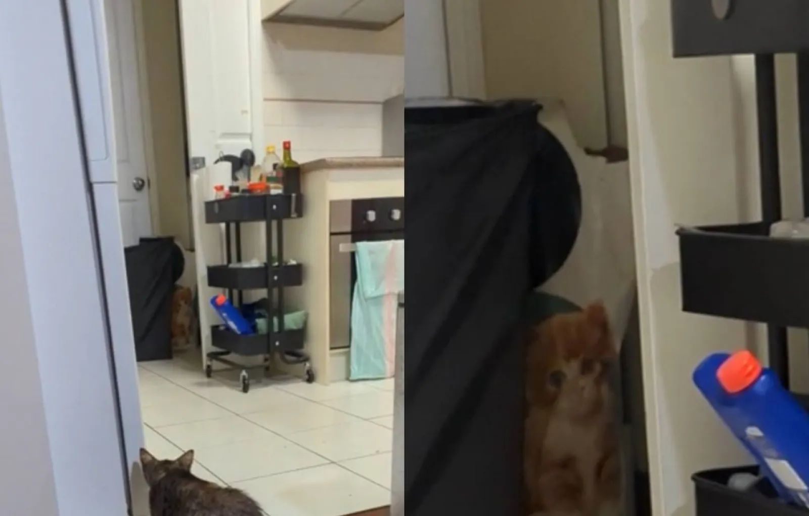 Многим людям с плохим зрением знакома ситуация, когда видишь на улице симпатичного чёрного котика, а в итоге он оказывается обычным мусорным пакетом. Кошки хоть и обладают более острым зрением, но иногда они тоже попадают в похожие ситуации, и герой ролика тому пример.