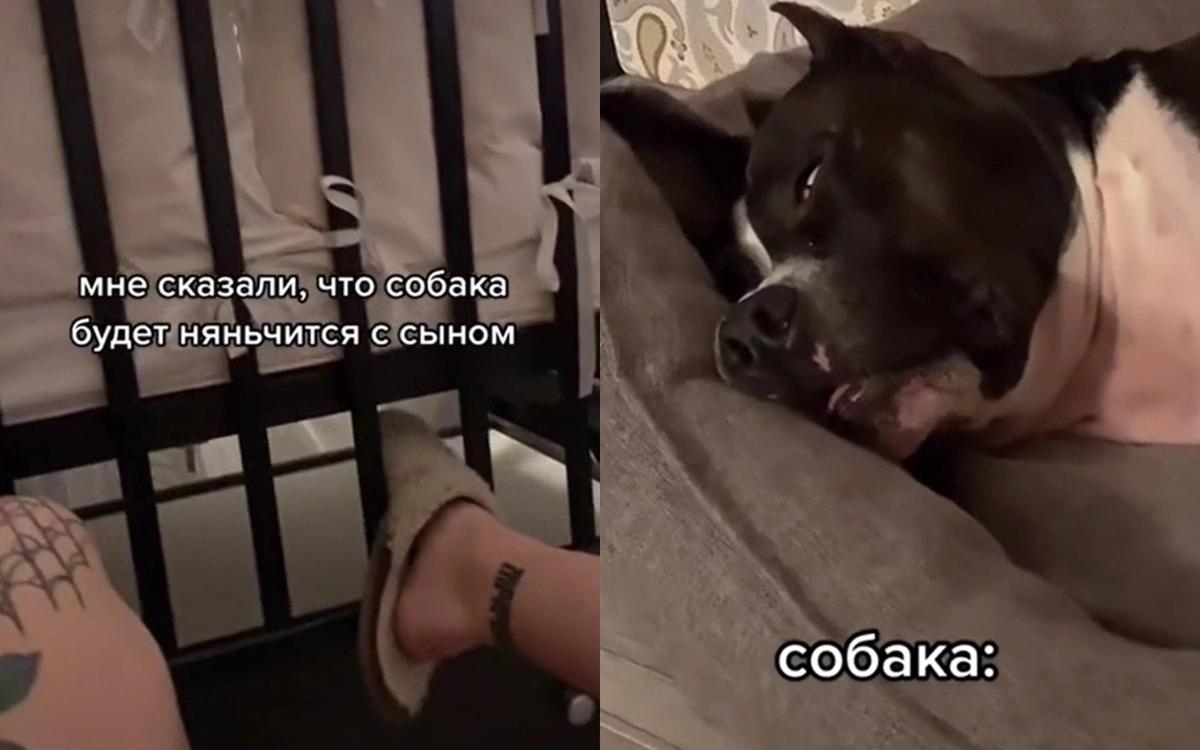 Ты родила — ты и следи: на видео сняли собаку, утомленную заботой о ребенке