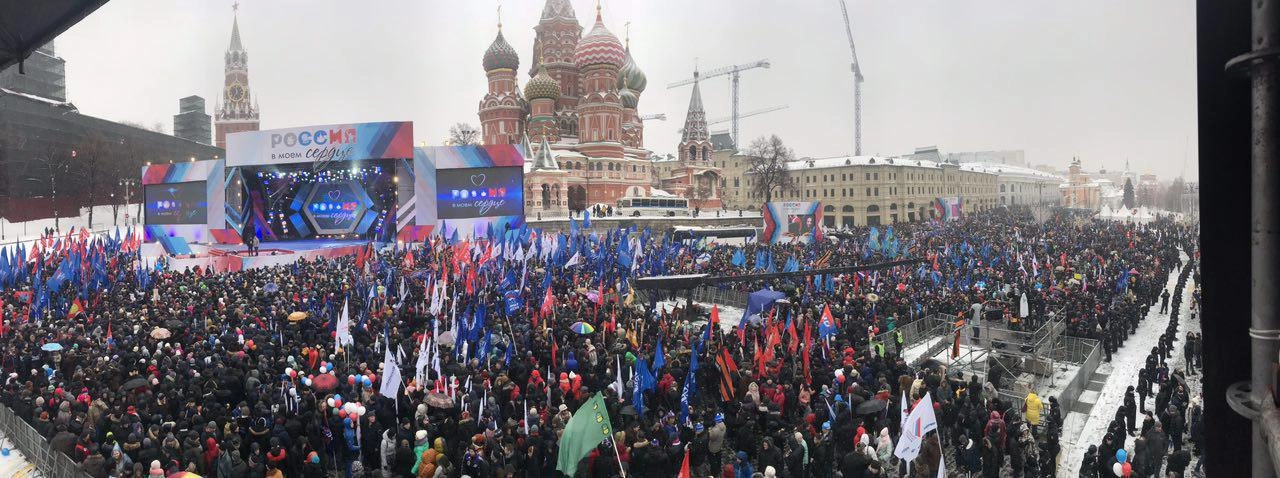 Только в Москве на Васильевском спуске, по данным МВД, на концерте «Россия в моем сердце» собрались более 60 тысяч человек. На митинг-концерт в Грозном пришли 170 тысяч человек. Аналогичные мероприятия прошли во многих в других городах России, «Ридус» вел прямую трансляцию с этих мероприятий.
