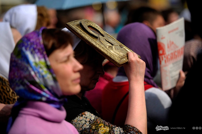 Молебен «В защиту веры, поруганных святынь, Церкви и ее доброго имени» в Москве. © Антон Тушин/Ridus.ru