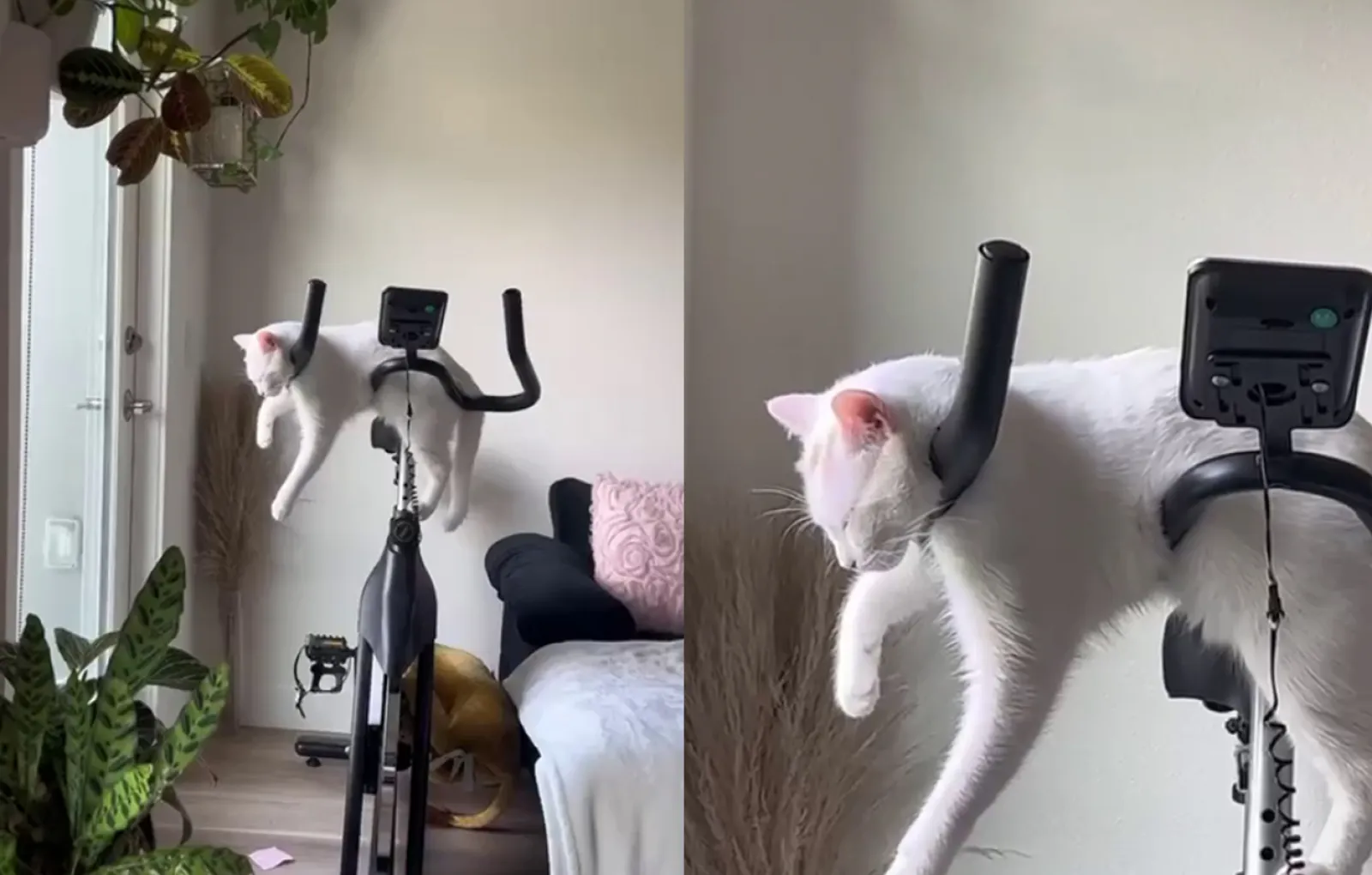 У — удобно: спящий на велотренажере котик показал, насколько коты неприхотливы