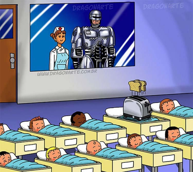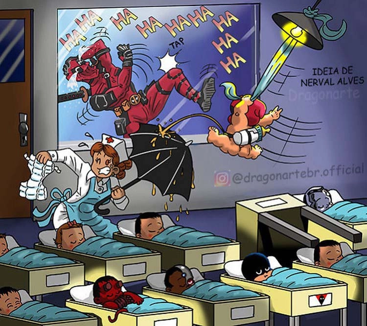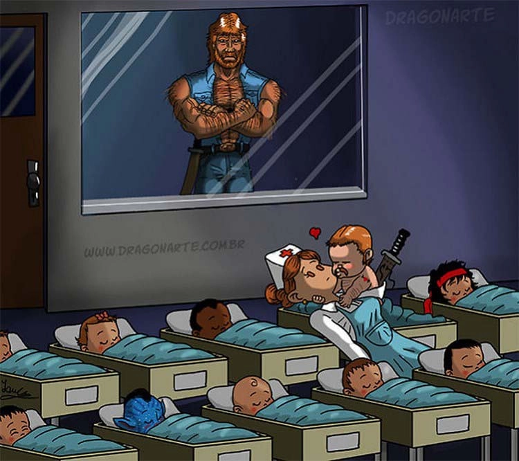 Бразильский художник Лукас Эдуардо Нассименто (Lucas Eduardo Nascimento) любит рисовать знаменитых супергероев в неожиданных образах. В одном из своих проектов иллюстратор, известный в Сети под ником Dragonarte, превратил киношных героев в отцов. В серии картинок новоиспечённые папы впервые видят своих детей в роддоме. И это то ещё зрелище, ведь, как известно, яблоко от яблони недалеко падает.