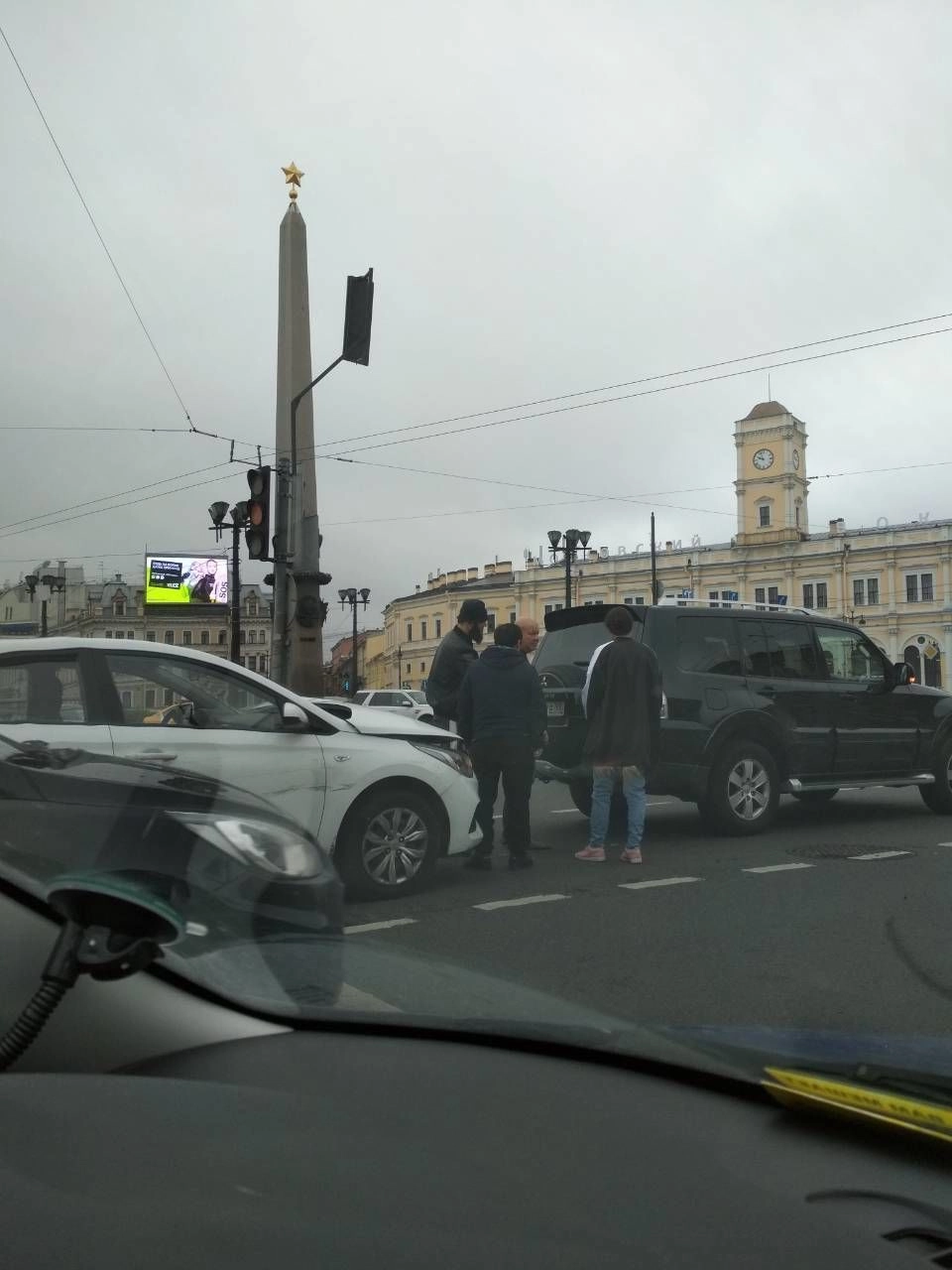 В беседе с «Ридусом» артист рассказал, что авария случилась на площади Восстания. Он стоял на перекрестке, ожидая, пока загорится зеленый сигнал светофора, когда в задний бампер его внедорожника влетел Hyundai Solaris.