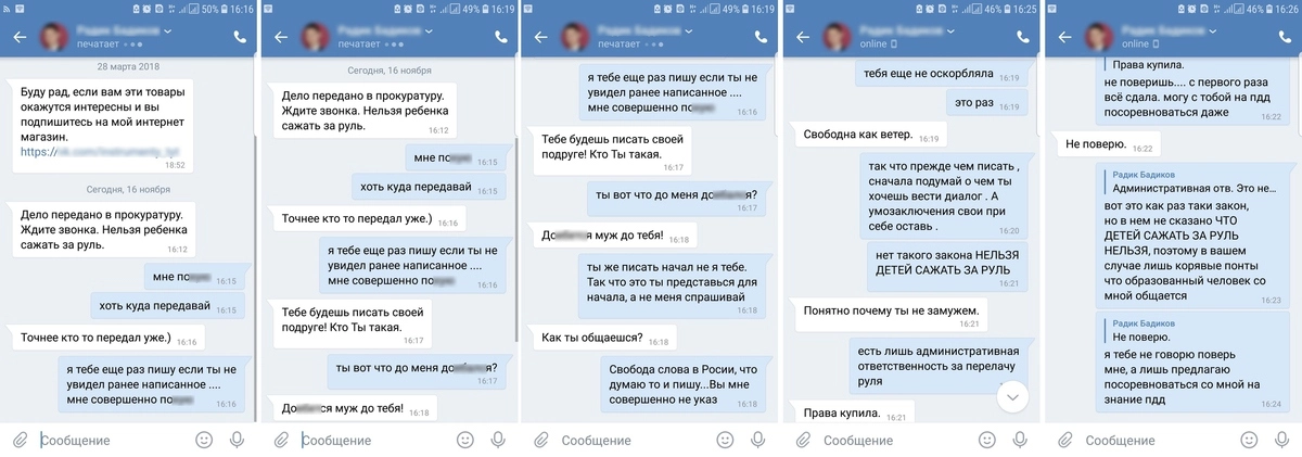 На своей странице Агина выложила скриншоты некоторых сообщений, которые ей присылали.