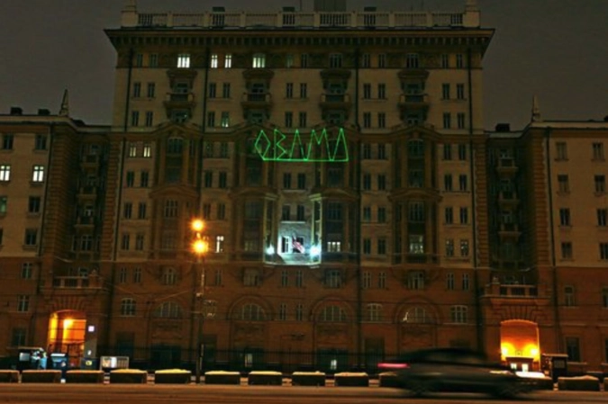 У Посольства США в Москве повесили баннер с надписью «Обама киллер №1»