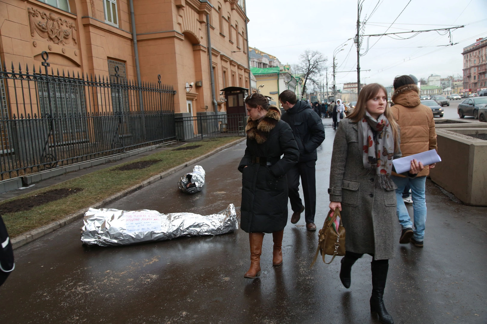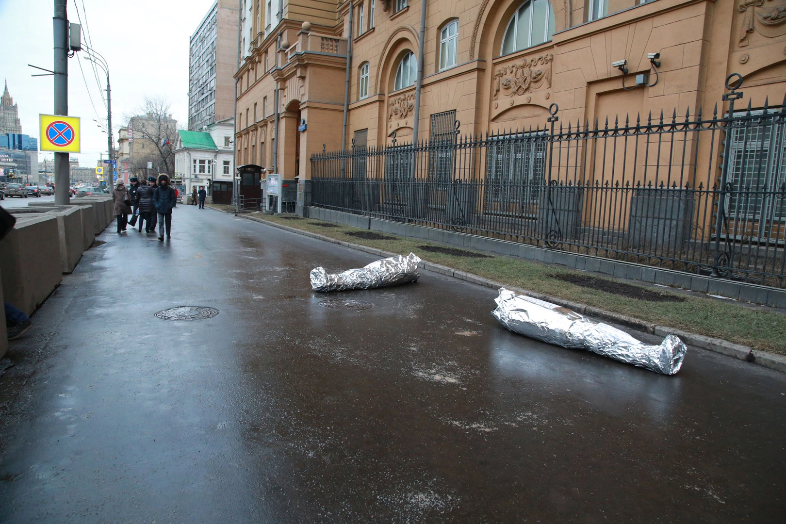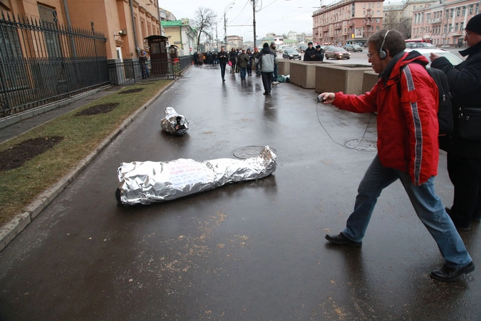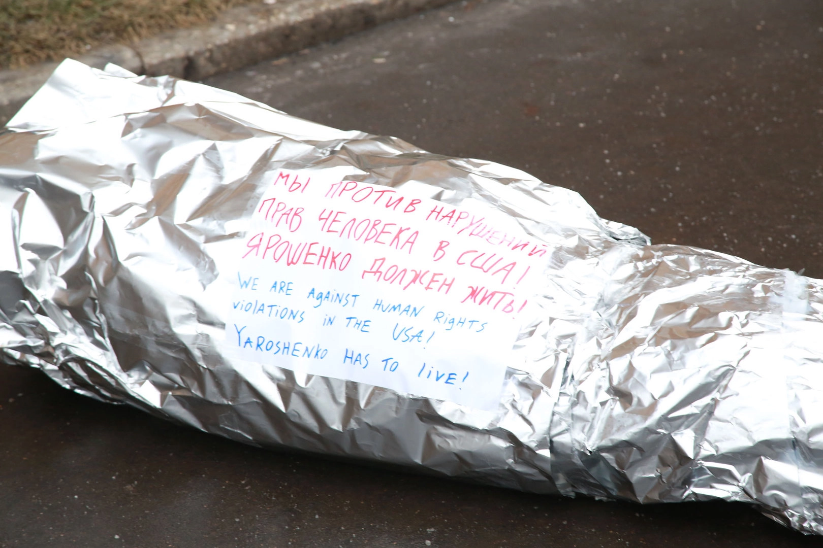 В ходе акции перед посольством США появились тела, символизирующие погибших от пыток заключенных американских тюрем. На телах, завернутых в цинковую фольгу, было написано: «Мы против нарушений прав человека в США! Ярошенко должен жить!», на русском и английском языках.