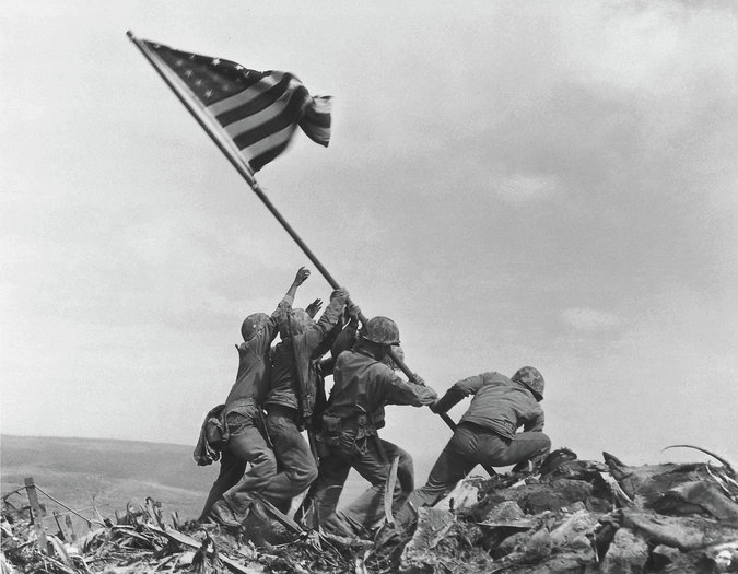 В 1945 году фотограф Джо Розенталь сделал знаменитый снимок, получивший название «Водружение флага над Иводзимой» — на нем изображены пехотинцы Корпуса морской пехоты США и санитар ВМС США водружающими флаг США на вершине горы Сурибати в Битве за Иводзиму.