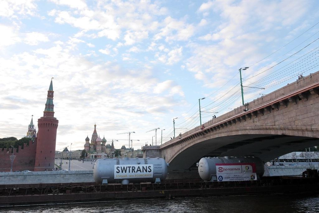 Вечером 16 июня у самых стен Кремля состоялось уникальное событие! По Москве-реке прошла баржа со сверхгабаритным грузом - двумя парогенераторами для строящейся Ленинградской атомной станции, изготовленными в Подмосковье заводом «ЗиО-Подольск». Вес каждого парогенератора – 430 тонн (для сравнения средний вес 1 танка – около 40 тонн). Длина парогенератора - 14,75 м.
