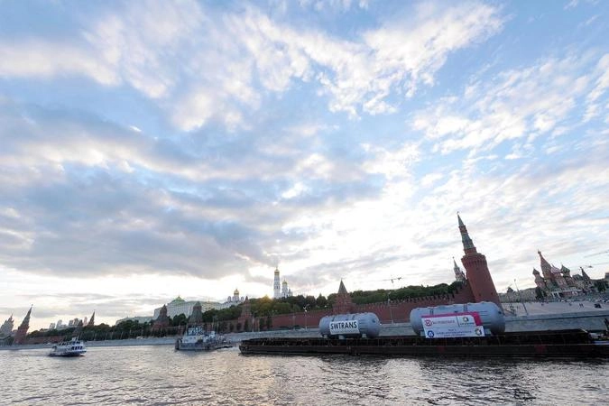 Маршрут движения баржи пролегает вдоль набережной Кремля. По главной водной артерии столицы, и далее по каналам, озерам и водохранилищам парогенераторы проследуют до города «Сосновый бор» в Ленинградской области.