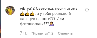 «А вы что, не знали, что у Светы есть один нюанс? Это шесть пальцев», — подшучивают над Лободой поклонники.