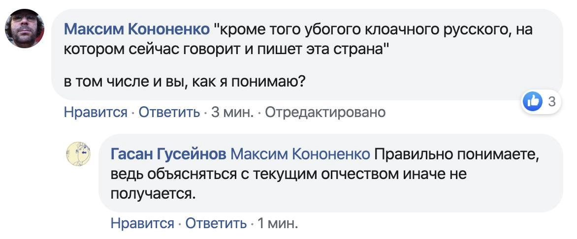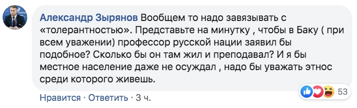 По словам Гусейнова, кто-то пожаловался руководству факультета на его пост в Facebook. На факультете высказывания преподавателя о русском языке назвали эмоциональными и избыточными.