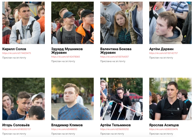 Авторы портала, которые до сих пор остаются неизвестными, обнаруживают участников митингов и протестных акций при помощи отечественной технологии FindFace, позволяющей идентифицировать людей в Сети по фотографии.