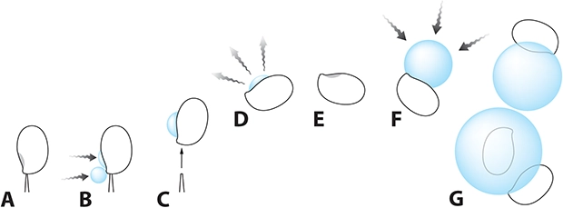 Ученые изучили споры семи видов грибов и установили, что все они формировали на себе во влажной газообразной среде новые капельки, причем в некоторых случаях несколько спор объединяли свои капельки в одну большую каплю, значительно превосходящую их по размеру.