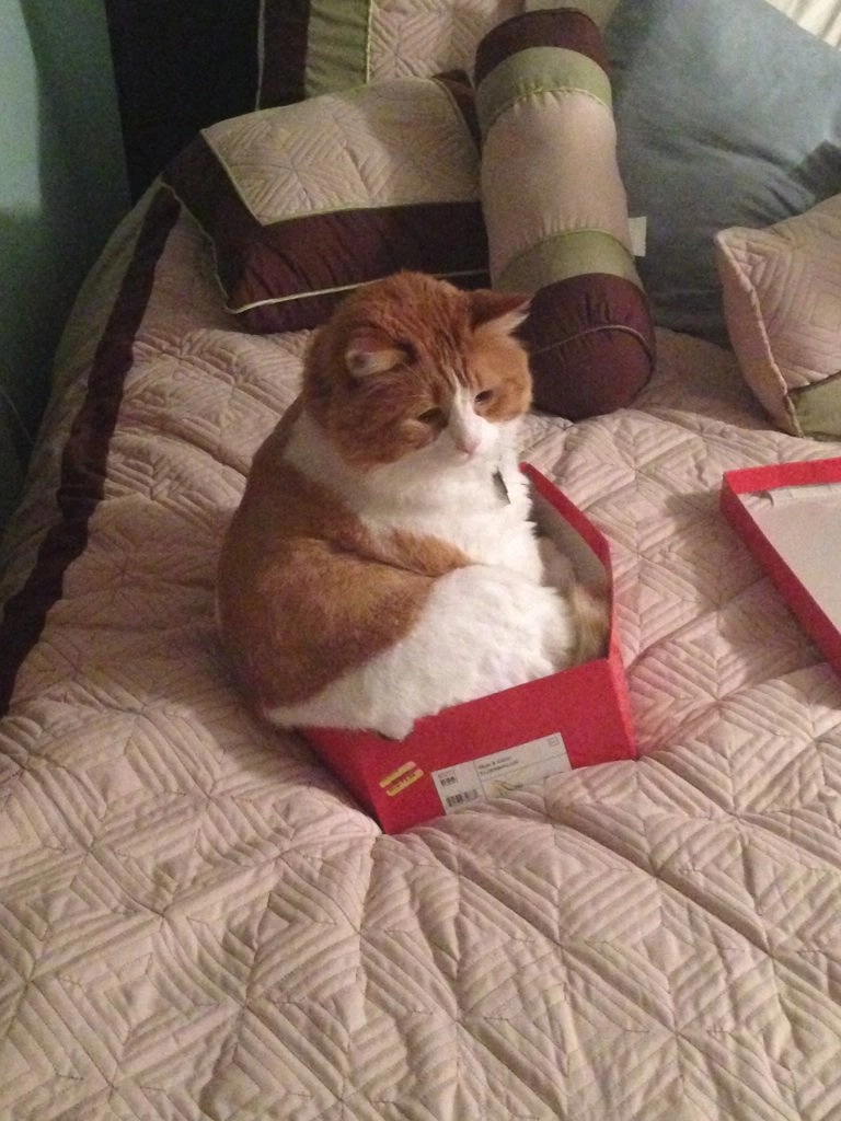 В общем, если вы счастливый обладатель кота, сбегайте в ближайший магазин и принести ему коробку! Это нехитрое изобретение человечества согреет котика, избавит его от стресса и послужит надёжным укрытием и местом отдыха. Мы собрали для вас подборку фотографий, которые наглядно доказывают, как отчаянно коты нуждаются в коробках и демонстрируют уникальную способность всех котов мира помещаться в любую, даже самую крошечную коробчонку. Смотрите сами!