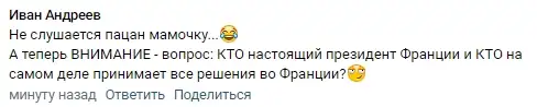 В последнем вопросе российские комментаторы оказались солидарны с французскими, которые советуют президенту телефон доверия и посвящают ему издевательские посты «моральной поддержки».