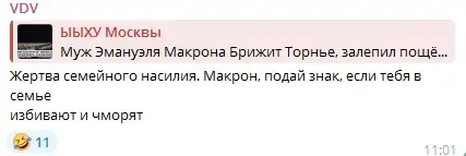 Но основной массив шуток о Макроне в Рунете всё-таки посвящён именно взаимоотношениям во французской президентской чете. Российские пользователи не забывают, что лидер Пятой республики женат на собственной бывшей учительнице. Популярная в последние годы тема школьного и домашнего насилия тоже всплыла.