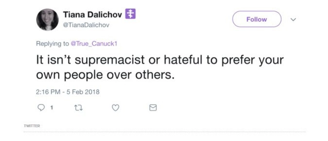 «Предпочитать „своих“ людей чужим — это не супремасизм и не проявление ненависти», — объясняла учитель на своей странице в Twitter.