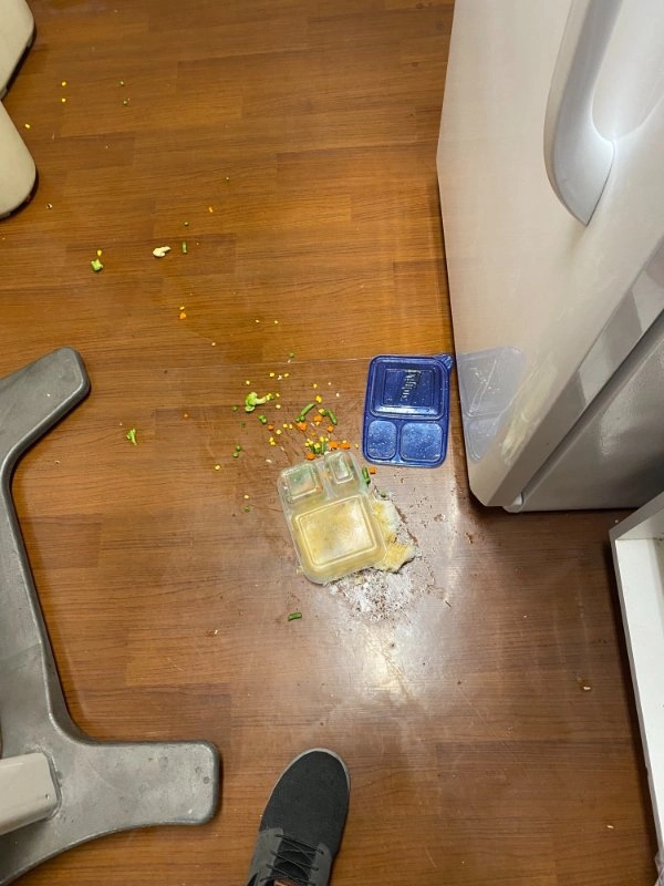 “Вот что бывает, когда друзья решают пошутить, спрятав твои наушники в упаковку с нагетсами, а ты, не проверив, отправляешь ее в микроволновку”.