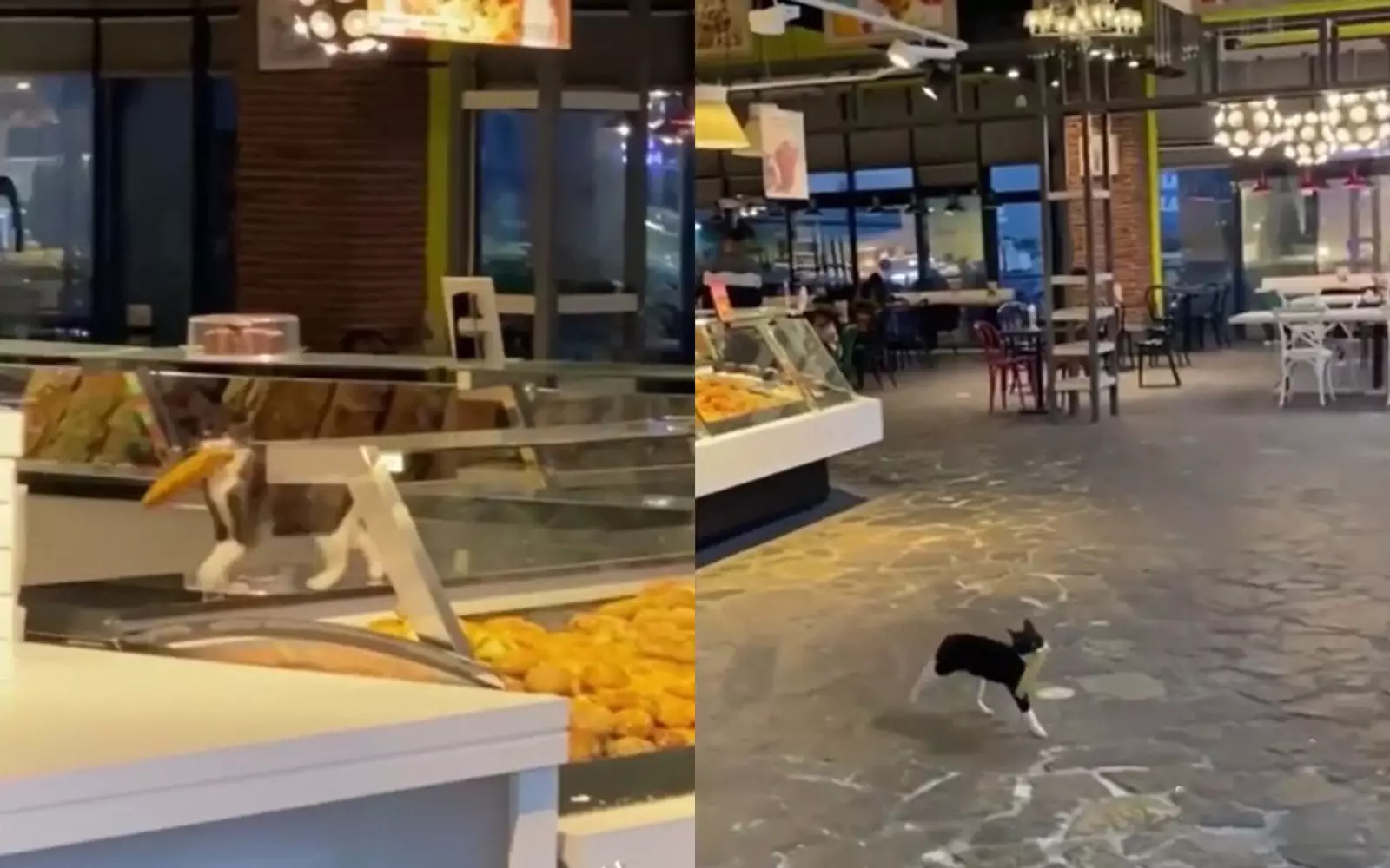 Удачно зашел: наглый кот украл сыр из витрины и был очень доволен собой