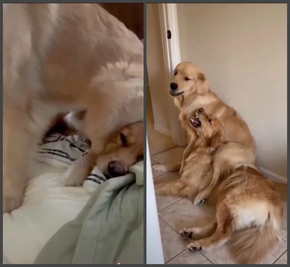 Удобнее, чем в кресле: пес полюбил сидеть верхом на своей сестре