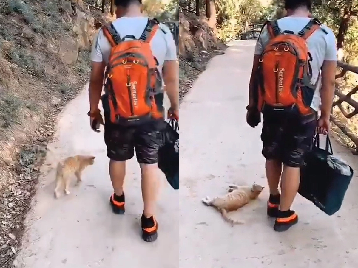 Кошки своенравны и никогда не подойдут к человеку, если им от него ничего не нужно. А если нужно, то на время может стать «самой преданной кошкой в мире», как, например, пушистая гериня этого ролика. На кадрах видно, как она дважды падает на землю перед ногами идущего туриста, словно просит взять её с собой или хотя бы погладить. Похоже, такая настойчивость четвероногой спутницы привела мужчину в замешательство.