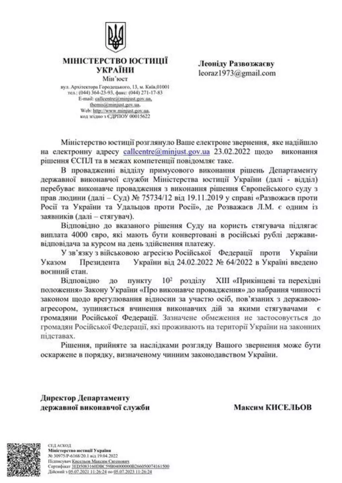 «Наплевала на решение ЕСПЧ, вот така Украина це Европа. Ну, этого следовало ожидать, так как это не первый ответ Минюста Украины. И раньше они находили различные фантастические причины. А теперь у них появился прекрасный повод», — следует из поста.