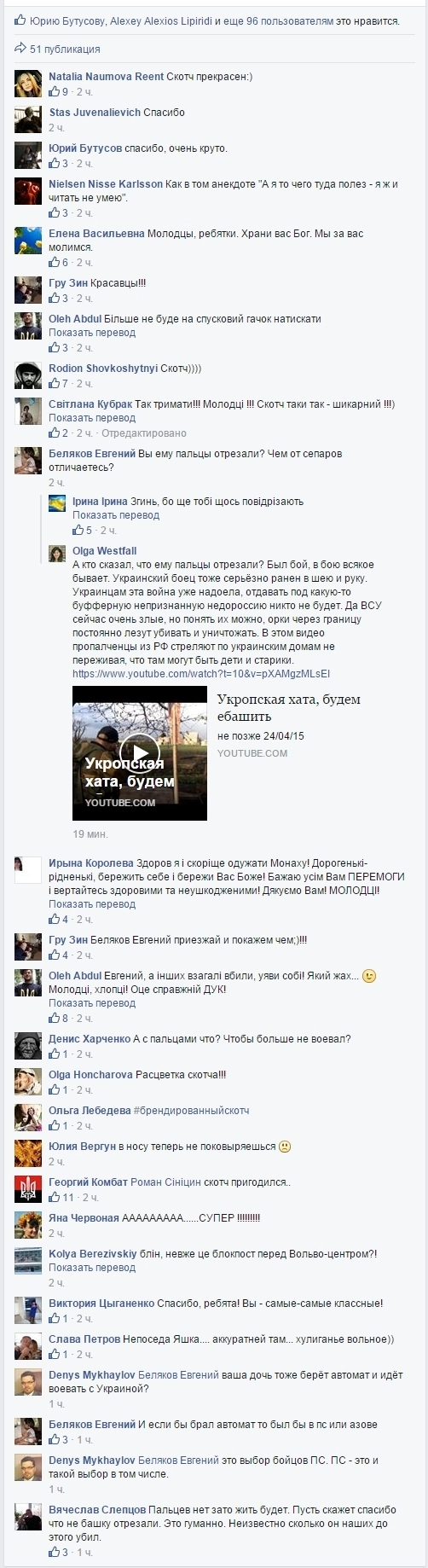 О пытках несчастного автор поста не сообщает. Однако опубликованные снимки и без того вызывают восторг украинской публики, выразившей его посредством комментарием к шокирующему посту.