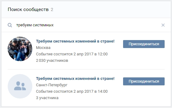 В понедельник, 27 марта, сразу же после несанкционированных акций главы ФБК Алексея Навального против коррупции, состоявшихся в нескольких городах России, в социальной сети «ВКонтакте» была создана группа нового митинга «Требуем системных изменений в стране!».