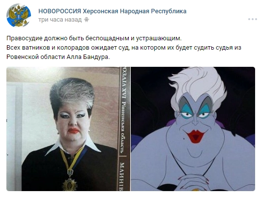 Некоторые предлагают отправить Аллу Бандуру на «Евровидение», намекая, что последние годы главными фаворитами этого конкурса были участники с неординарной внешностью. Другие сравнивают ее с героиней мультфильма «Русалочка» Урсулой (выше на скриншоте).
