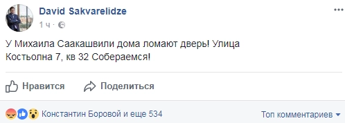 Как сообщил его соратник Давид Сакварелидзе, представители правоохранительных органов выломали дверь и проникли в квартиру к политику.
