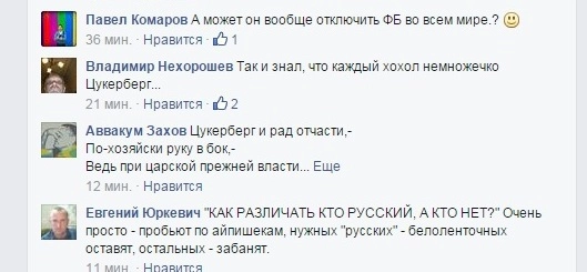 А в соцсетях и вовсе у всех русофобов — тугая струя счастья. Не важно, что хата сгорела, главное у соседа неурожай. Ну, а тут такая радость — не будет у москалей «Фейсбука». Впрочем, и многие российские пользователи поверили и заволновались...