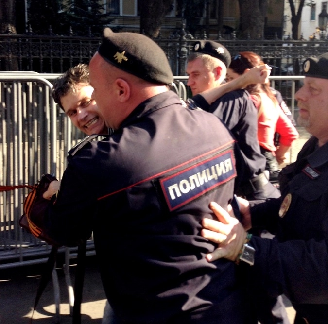 Не обошлось на пикете и без задержаний. В самом конце мероприятия, во время выступления одного из ораторов, представители организации «СЕРБ» Надежда и Георгий выбежали к ограде посольства и облили вывеску украинской дипмиссии красной краской. Через несколько секунд сотрудники полиции задержали их и препроводили в автобус. На этом и закончился пикет...