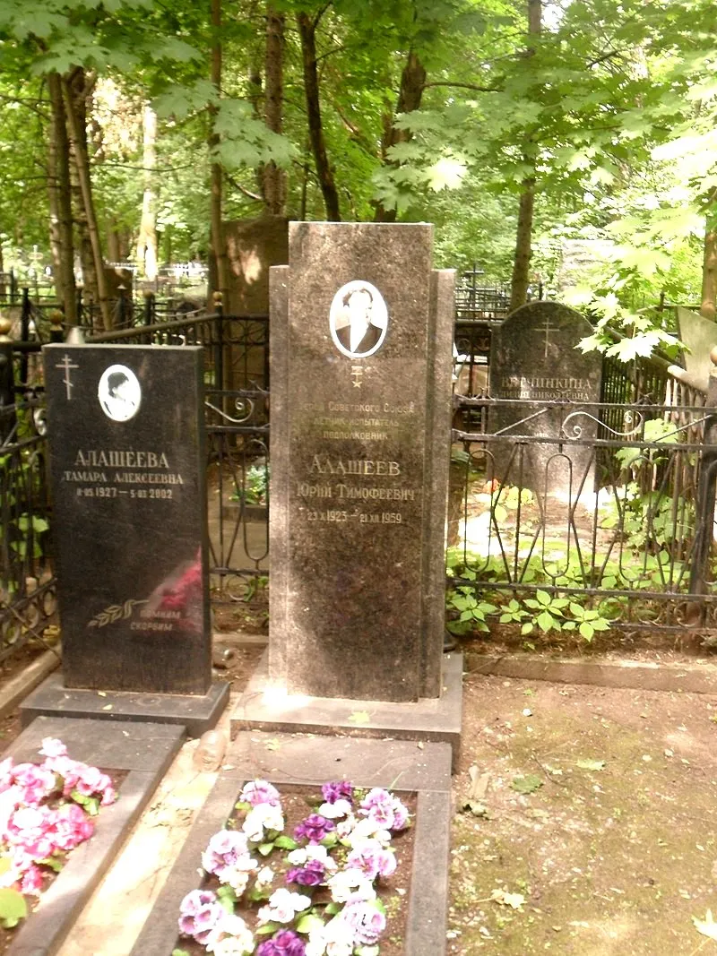 Ю. Алашеева похоронили в Жуковском, на Быковском кладбище. Указом Президиума Верховного Совета СССР от 5 мая 1960 года за мужество и героизм, проявленные при освоении новой военной техники, подполковнику Алашееву Юрию Тимофеевичу посмертно было присвоено звание Героя Советского Союза.